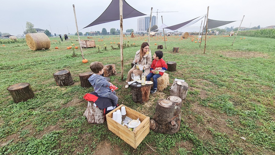 Dopo aver girato in lungo e in largo tutto il campo, e aver ispezionato ogni singola zucca (i miei bambini sono dei precisini) e scattato mille mila foto (la mamma è una rompina), finalmente è giunto il momento che tutti noi aspettavamo: il pranzo!