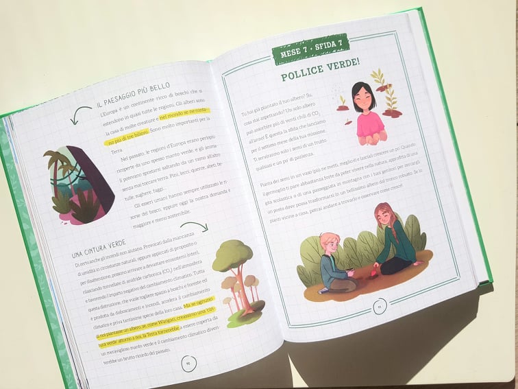 Questo libro ci è piaciuto perché: attraverso “Tu puoi salvare il mondo” i piccoli lettori diventano veri e propri protagonisti grazie alle 12 sfide inserite tra una storie e l’altra. In questo libro, infatti, ci sono i racconti di personaggi famosi e non che hanno fatto la differenza per salvare il Pianeta e alla fine di ogni storia c’è una sfida o un esperimento da compiere, piccoli giochi e attività che sicuramente aiutano i più piccoli a capire come “lavora” la Terra e quanto impatto hanno su di essa le nostre azioni. C’è l’esperimento del ghiaccio, per far capire quanto velocemente si può sciogliere, quello dell’energia per capire come e quante ne consumiamo e quali alternative si potrebbero adottare per risparmiarne un po’, la sfida contro i rifiuti e la plastica … e molti altri ancora! 12 sfide, una al mese, per un interno anno.