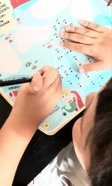Perché ci è piaciuto questo libro: perché offre al bambino la possibilità di fare tanti giochi diversi e non solo colorare dei disegni che, si sa, dopo un po’ annoia. La pratica maniglia dà la possibilità al bimbo di portarsi il libro dove vuole in completa autonomia. E’ un valido alleato per intrattenere per un po’ il bimbo, magari mentre siete a tavola, ma è anche un carinissimo libro con giochi da fare insieme per divertirsi un po’, magari sotto l’ombrellone o sdraiati su un prato in montagna.