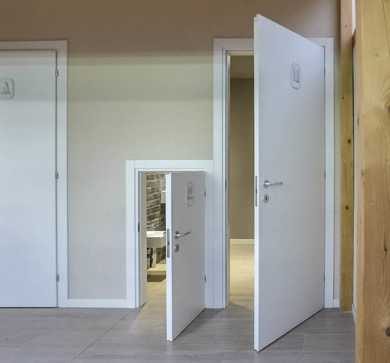 Tra le chicche del Villaggio ce n’è una davvero originale: vicino alla toilette, vedrete una porticina piccina piccina che sembra quella delle casette degli gnomi, si tratta dell’entrata al bagnetto per i bambini dove ogni cosa, dal lavandino al water, è a misura di nanetto!
