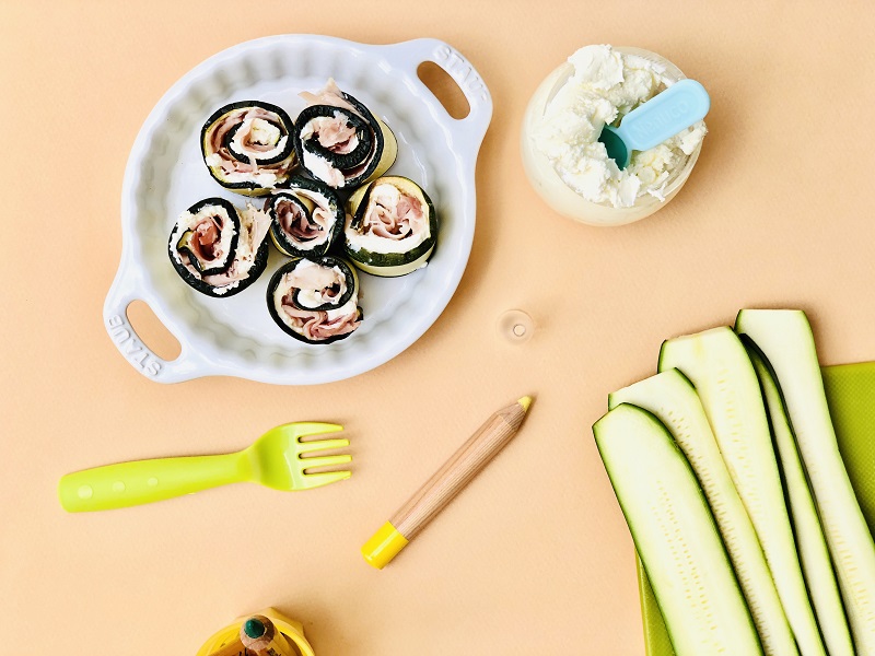 Rotelle di zucchine grigliate, robiola e prosciutto cotto