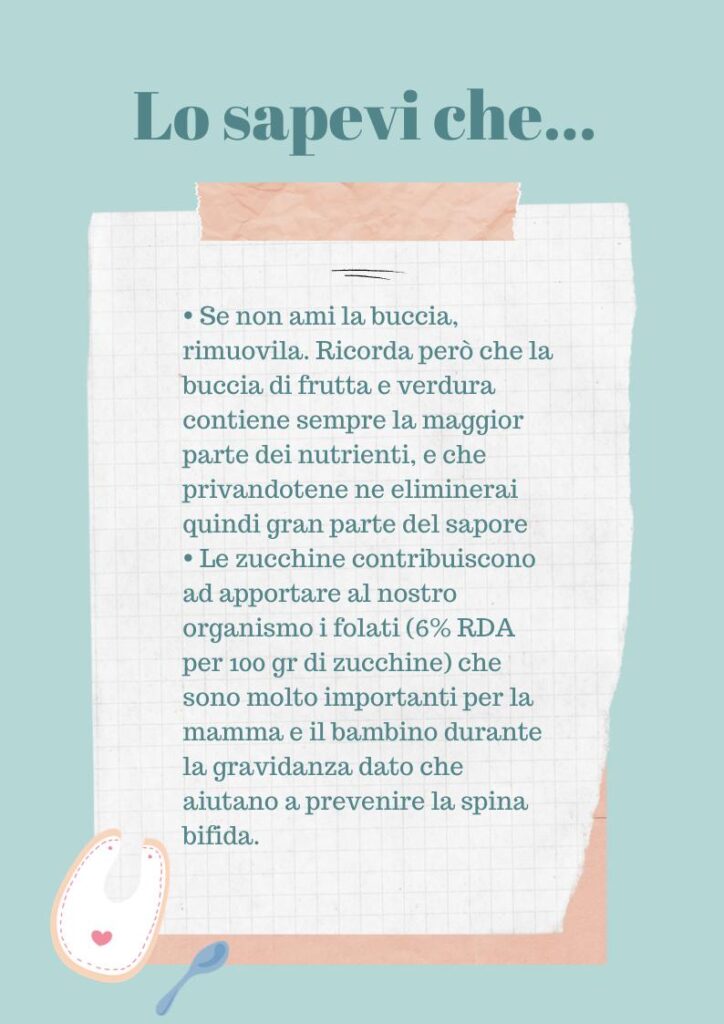 QUANDO L’introduzione delle zucchine avviene già dal 6° mese sotto forma di vellutate e passati di verdure.